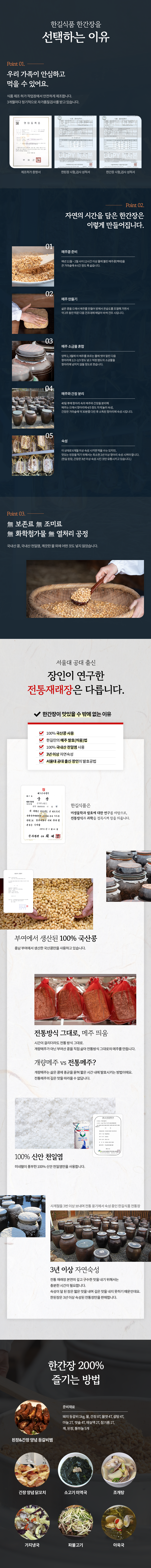 한길식품의 재래 된장과 간장은 인공 첨가물 없이, 단, 염도가 높을 수 있으니 기호에 맞게 적절한 양으로 조절하여 주시는 것이 좋습니다. |